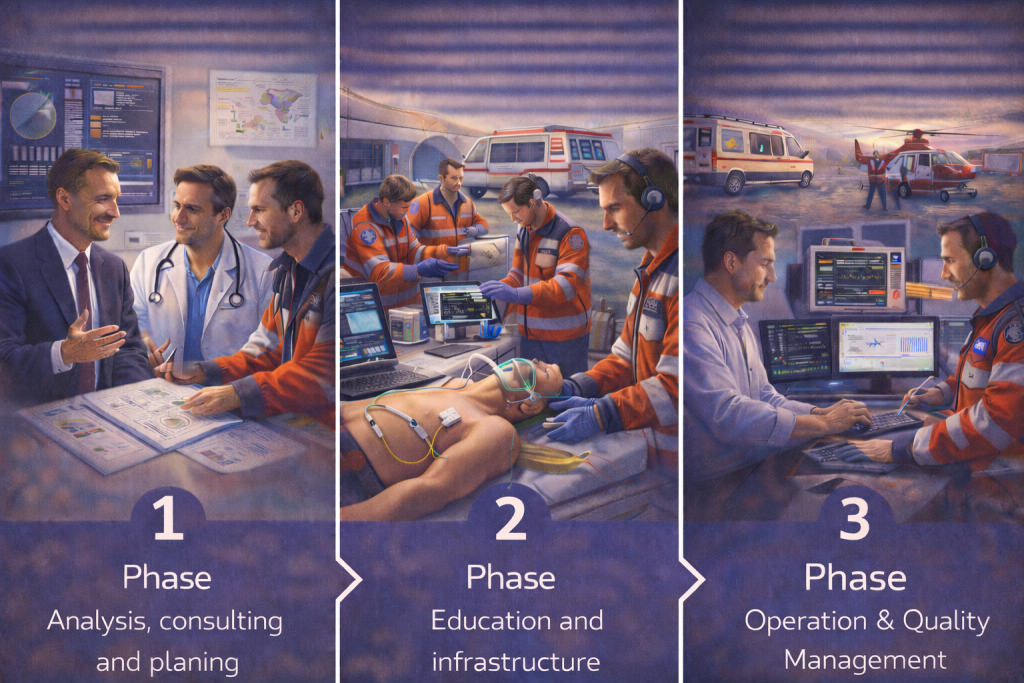 Unser internationales Expertenteam steht Ihnen jederzeit zur Verfügung, um Sie bei der Planung und dem Aufbau Ihrer notfallmedizinischen Infrastruktur zu unterstützen.
